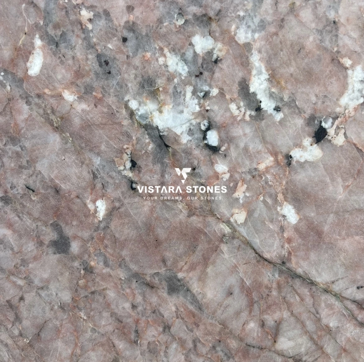 This granite is characterized by a light pink background with a unique pattern and patches of white color giving the granite a very rich and vibrant look.