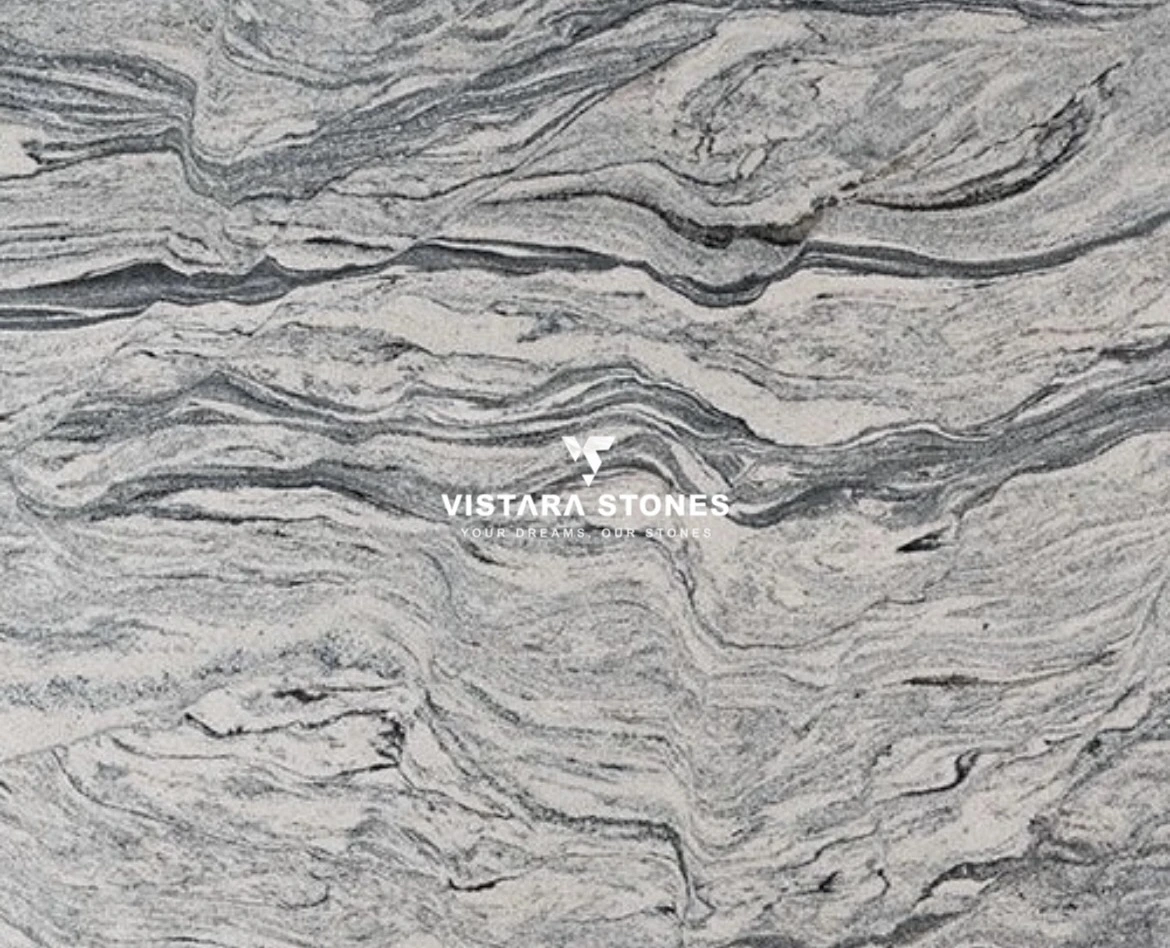 This granite is a type of natural stone known for its predominantly gray coloration with variations in shades and patterns. This granite typically features a range of gray tones, from light to dark, often with swirling patterns or flecks of other colors such as white, black, or blue, resembling clouds in a silver sky.